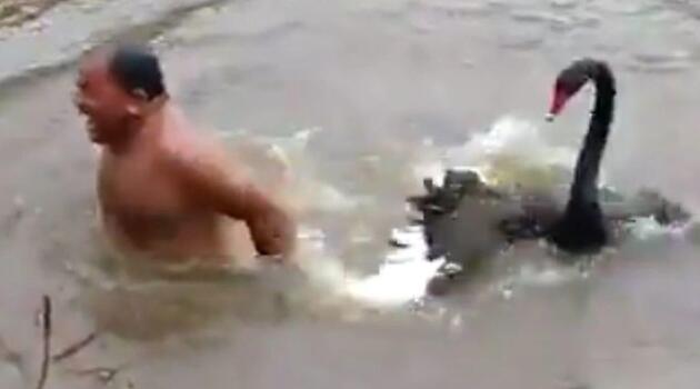 Коварный лебедь изгнал купальщика из своего водоёма