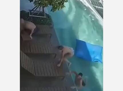 Туристы отдыхали в бассейне на крыше небоскреба во время землетрясения и попали на видео