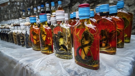 Во Вьетнаме же довольно популярны настойки со змеей. Если верить местным, то такой напиток обладает обезболивающим действием, а также считается довольно сильным афродизиаком.