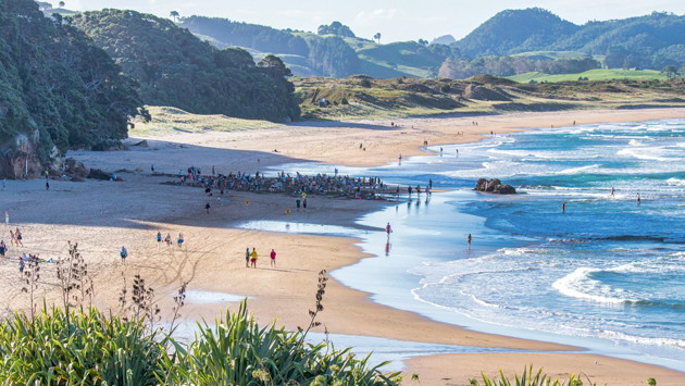 Пляж Горячей воды — это настоящий спа-салон на свежем воздухе. Дело в том, что под землей здесь из трещины пробиваются к поверхности два геотермальных источника, пропитывая песок пляжа практически насквозь.