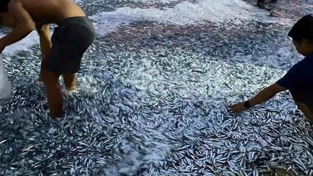 Миллионы сардин выбросились на побережье Филиппинских островов. Гигантский косяк рыб практически полностью накрыл участок пляжей в провинции Сарангани протяженностью около четырех километров.