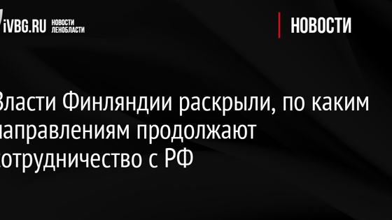 Власти Финляндии раскрыли, по каким направлениям продолжают сотрудничество с РФ