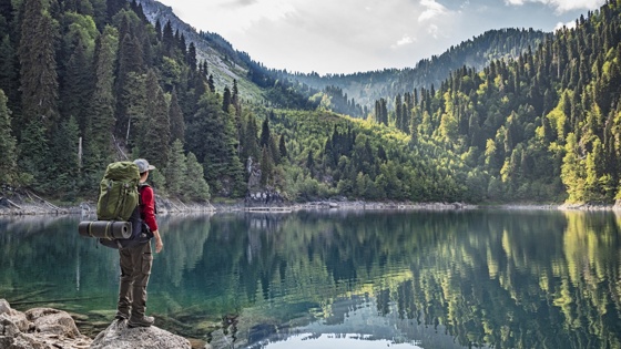 - озеро Рица с бирюзовой водой в окружении красивейших гор,