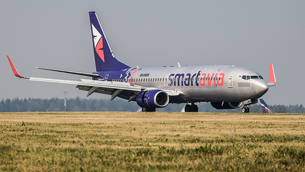 Самолет Smartavia выкатился за пределы взлетно-посадочной полосы при посадке в Перми