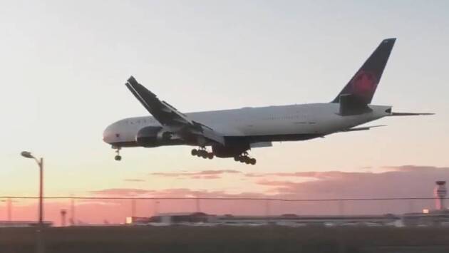 Уточняется, что инцидент произошел в понедельник, 13 ноября, в международном аэропорту Торонто Пирсон в Онтарио, Канада. На размещенных в сети кадрах Boeing 777 при посадке резко наклоняется вправо, однако все же благополучно приземляется.