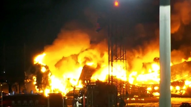 Пассажирский лайнер компании JAL загорелся. Прибывшим на место ЧП пожарным не удалось подавить огонь. В тушении возгорания участвовало в общей сложности около 80 машин. В итоге воздушное судно сгорело дотла. Самолет Береговой охраны Японии также охвачен огнем.