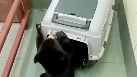 "Когда она заходила, дверку мы прикрывали, но не до конца, чтобы медведица могла легко ее толкнуть и выйти, если захочет. Затем уже закрывали дверку и постепенно увеличивали время ее пребывания внутри, подкрепляя успех лакомством", – продолжил Кочатов.