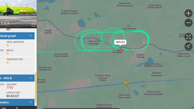 Воздушное судно S7, 25 июля вылетевшее рейсом из международного аэропорта Толмачево в направлении Сочи, кружит над населенным пунктом Чулым. Экипаж отправил специальный аварийный сигнал «7700», означающий возникновение опасной ситуации на борту.