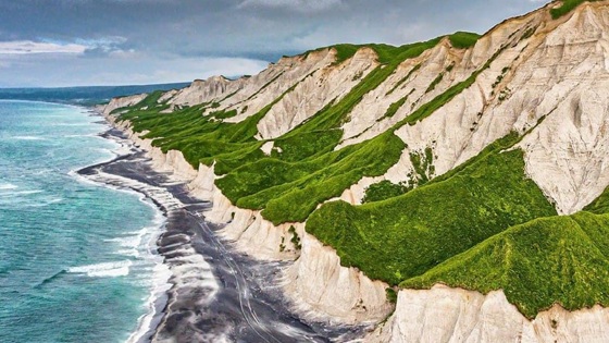 «Одно из самых удивительных мест нашей страны – это Белые скалы на Курилах. Внешне они напоминают домики хоббитов, покрытые травяной крышей, только высота этих «домиков» как у 30-этажной многоэтажки и домики эти тянутся почти на 30 километров», — рассказывает на своей странице в Instagram путешественник и фотограф Сергей Доля.