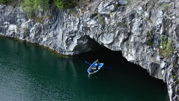 Горный парк «Рускеала» — главная гордость Карелии. Здесь вы найдете удивительное сочетание мраморных гор, бирюзовых озер и бурной зелени. Сейчас здесь можно сходить на экскурсию в подземелье, покататься на лодке и вкусно поесть, а еще несколько веков назад тут в тяжелейших условиях добывали горную породу, которой впоследствии был украшен Исаакиевский собор.