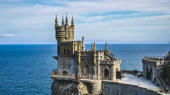 Главная достопримечательность Крыма возвышается на скале Аврора в ялтинском поселке Гаспра. Именно этот замок красуется на открытках, картах, рекламной продукции и путеводителях. Скала буквально врезается в морскую гладь, и во время штормов это место превращается в невероятное зрелище.