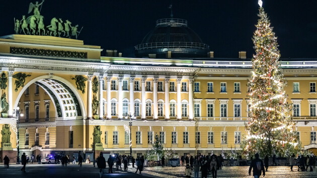 Огни главной елки Петербурга зажгли на Дворцовой площади