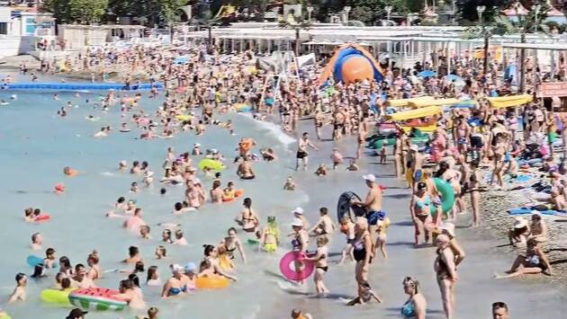 Переполненные туристами пляжи российского курорта попали на видео