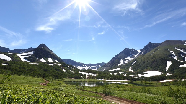 После экскурсии туристов везут искупаться в "Зеленовских озерках" - благоустроенных, опять же по камчатским меркам, радоновых источниках. Расположен горный массив Вачкажец всего в 80 километрах к западу от Петропавловска-Камчатского. На сайте турагентств вертолетных экскурсий туда просто нет - слишком близко. Чтобы добраться сюда, вертолет просто не нужен - полтора часа по вполне сносной, по большей части асфальтированной дороге, и ты у начальной точки маршрута.