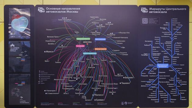 На единой схеме маршрутов каждому из автовокзалов присвоен свой цвет и обозначены ключевые направления. На столичных автовокзалах обновили схемы маршрутов. Теперь там можно увидеть недавно появившиеся направления в страны СНГ, в различные города и новые регионы России. Навигационные элементы размещены в залах ожидания на автовокзалах Центральный, Северные Ворота, Южные Ворота, Саларьево и Красногвардейский. «Мы непрерывно развиваем пассажирские сервисы по поручению Сергея Собянина. На всех столичных автовокзалах доступны вендинговые аппараты, станции аренды зарядных устройств и бесплатные комнаты матери и ребенка. Также можно воспользоваться услугами инспекторов Центра обеспечения мобильности пассажиров. В этом году с открытием автовокзала Красногвардейский мы завершили формирование единой навигации на этих объектах транспортной инфраструктуры Москвы», — рассказал заместитель Мэра Москвы по вопросам транспорта и промышленности Максим Ликсутов. На единой схеме маршрутов каждому из автовокзалов присвоен свой цвет и обозначены ключевые направления. Цветовой индикатор подсказывает пассажирам, откуда отправляются автобусы в тот или иной город. На схемах маршрутов конкретного автовокзала отображена более точная география рейсов с указанием всех городов, куда можно уехать. Некоторым направлениям присвоили специальные пиктограммы. Они подсказывают наиболее интересные туристические маршруты. Например, места, где можно покататься на горных лыжах и изучить исторические достопримечательности. Кроме того, на схему нанесли крупные водоемы. Скачать ее можно на едином транспортном портале.