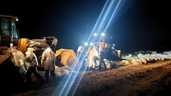 Как сообщили в Оперативном штабе Краснодарского края, в темное время суток здесь трудились пять автопогрузчиков и шесть полноприводных самосвалов. Замазученные песок, гальку и землю грузовики вывозили к накопительной площадке в анапском хуторе Воскресенском – она также работает круглосуточно.
