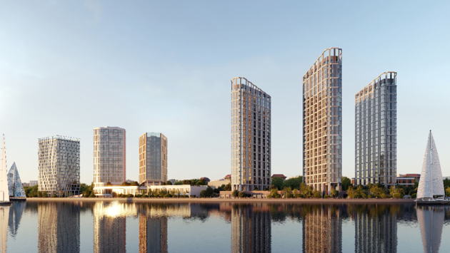 Проект премиум-класса Dream Riva состоит из трех башен высотой от 24 до 27 этажей, будто скользящих по водной глади как изящные парусники и отражающихся на ней.