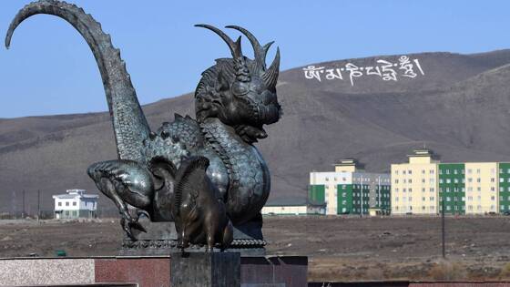 Тибетские монахи освятили гигантскую каменную мантру «Ом мани падме хум» на вершине горы Догээ под Кызылом. Об этом сообщает издание «Изнанка».