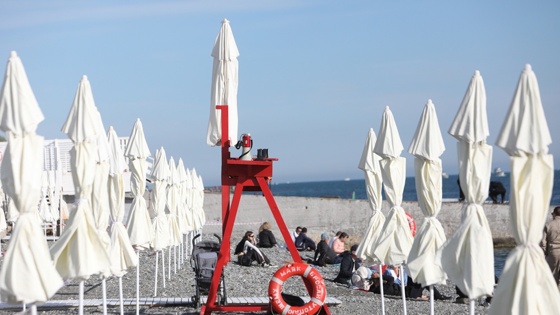 После вчерашнего ливня в Сочи днем воздух прогрелся до 30 с лишним градусов, но тем не менее морские пляжи еще не открылись.