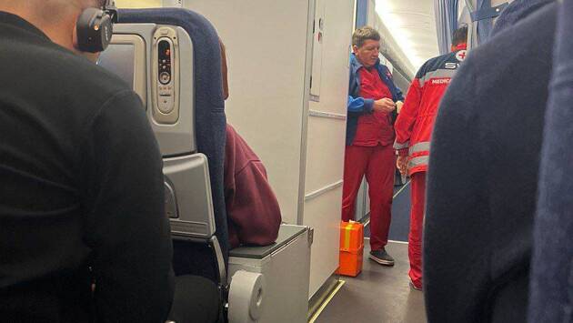 «Пришли медики, забрали его. Самолет по итогу вернулся на стоянку», — рассказали очевидцы.