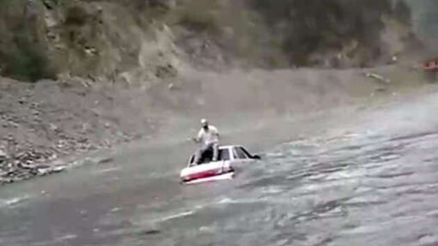 В Дагестане сняли на видео водителя, пьывущего на своем автомобиле по горной реке. Об этом сообщает Telegram-канал Mash Gor. "Водитель из Дагестана на спор заехал на тачке в реку в Тляратинском районе. Самая бессмысленная выходка на сегодня", - отмечается в публикации. На кадрах видно, что серебристая Lada плывет по середине быстрой горной реки задом наперед. На крыше машины сидит человек, опираясь ногами на багажник и кричит: "Я сказал, что я сделаю!". Затем он спрыгивает с автомобиля и вброд направляется к берегу. Машина при этом остановилась, развернувшись поперек русла. До этого в Москве произошло подтопление тоннеля на Волоколамском шоссе, это привело к остановке движения трамваев.