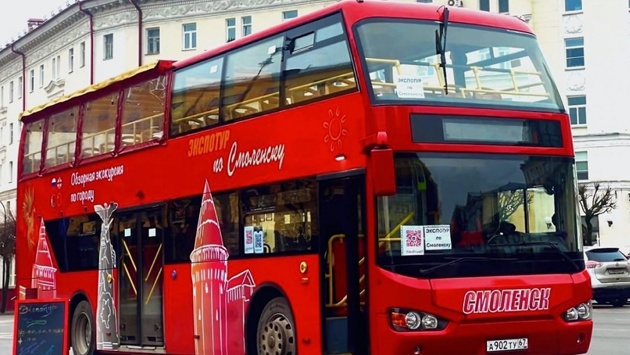 Туристический автобус в Смоленске украсили брендами региона.