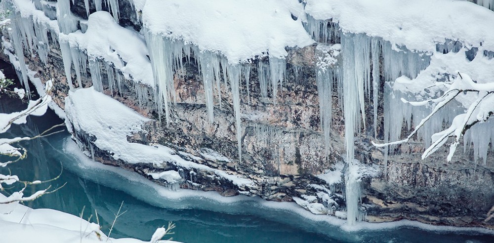 Однако можно погулять по ущелью и не столкнуться с толпой туристов — достаточно отправиться в Гуамку со стороны поселка Мезмай по железной дороге для того самого маленького поезда. Виды прекрасные, особенно если выпадет снег и замерзнут водопады. Выходить лучше пораньше, чтобы потом не искать обратный путь по темноте — в январе в горах темнеет довольно рано.