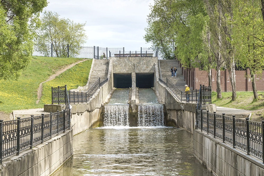 Раньше эта зеленая зона называлась "Райский сад". В 1865 г. из-за истощения запасов меди был закрыт медеплавильный завод, а на его месте разбили парк. Точкой притяжения для отдыхающих и любителей фотосессий является восьмиколонная ротонда. В саду также есть достаточно живописный канал со шлюзами, через который перекинуты мостики с узорчатыми коваными ограждениями. Сюда часто приезжают свадебные кортежи, чтобы по традиции повесить замок на ограждение и выбросить ключ в воду.