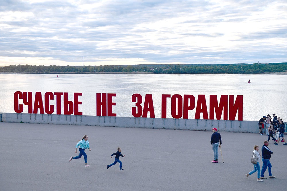 Обустроенная прогулочная зона протянулась вдоль реки Камы почти на 4 км, от Речного вокзала до Коммунального моста. На Пермской набережной часто проходят различные городские мероприятия, но это место пользуется популярностью у местных жителей и гостей города круглый год. В 2009 г. на набережной был установлен арт-объект "Счастье не за горами", который сразу стал настоящим символом Перми. Эта двухметровая надпись из красных букв, изготовленная по проекту художника Бориса Матросова, хорошо просматривается со всех окрестных точек.