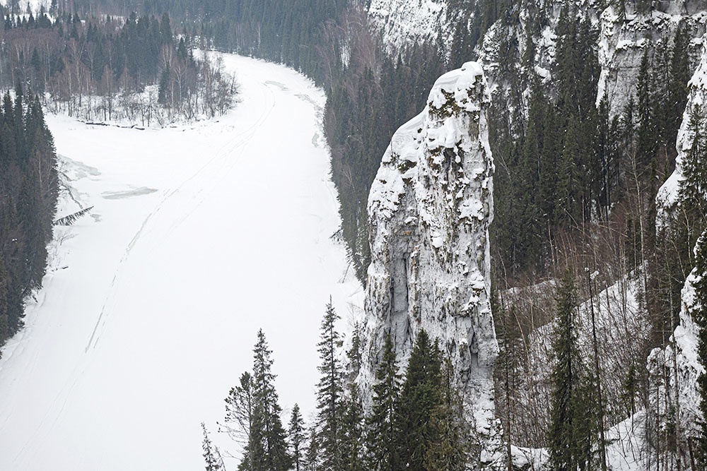 Самая узнаваемая природная достопримечательность Пермского края. Известняковый каменный массив протянулся вдоль берега реки Усьвы на 2 км, а высота некоторых скал-останцев достигает 150 м. Чаще всего туристы здесь фотографируют 70-метровую отдельно стоящую скалу "Чертов палец". Экскурсия на Усьвинские столбы и в Каменный город (скальный массив из песчаника площадью в 30 га, расположенный на вершине хребта Рудянский спой Уральских гор) - самый популярный туристический маршрут Пермского края.