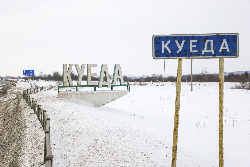 В Пермском крае очень много интересных топонимов. Например, самой южной точкой региона считается поселок Куеда. Есть разные версии происхождения этого названия - от башкирского слова "кое", которое означает "колодец", или от марийского "куэ" - "береза". Сейчас этот поселок со смешным названием - крупный железнодорожный узел: через Куеду проходит ветка Казань-Екатеринбург, соединяющая Поволжье, Урал и Сибирь.