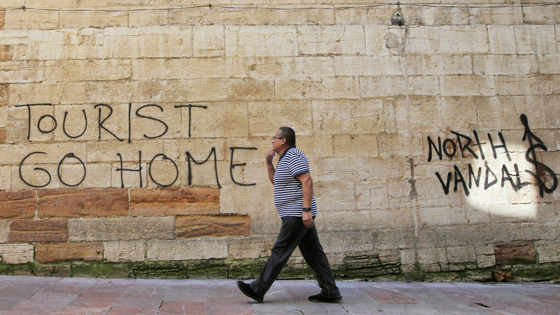 Так, в испанской Пальма-де-Майорке на арендованных автомобилях появились наклейки с направленными против туристов лозунгами. И это при том, что правительство на законодательном уровне уже существенно ограничило количество жилья, которое можно сдавать в аренду отдыхающим. Владельцы таких квартир или домов обязаны иметь лицензию для того, чтобы продолжать свой маленький бизнес, иначе им грозит штраф в размере от 20 до 40 тысяч евро. А новые разрешения власти Балеарских островов больше не выдают. К тому же онлайн-платформы должны будут убрать всю рекламу сдаваемого в аренду жилья. За нарушение этого требования предусмотрен штраф в размере до 400 тысяч евро. Но если на Балеарских островах борьба с туристами протекает относительно мирно, то в Каталонии туристы могут и пострадать. Местные радикалы из молодежных организаций Endavant и Arran портят велосипеды, сдаваемые приезжим в аренду, заливают клеем замки чемоданов и камер хранения, забрасывают красками и дымовыми шашками отели, где останавливаются туристы. Кроме того, на стенах многих зданий появились листовки и надписи: "Туристы, отправляйтесь домой", "Туристы, вы - террористы", "Для туристов номеров нет". Но наиболее резонансным стало нападение в конце июля в Барселоне четырех человек на туристический автобус. Молодые люди со скрытыми под капюшонами лицами, угрожая оружием водителю и пассажирам, прокололи автобусу шины и написали на лобовом стекле "Туризм убивает кварталы". Аналогичные акции против туристов прошли и в Валенсии. Растущим туристическим потоком оказались недовольны и в Греции. Здесь ради приезжих правительство разрешило магазинам открываться в высокий сезон по воскресеньям. Решение работать или нет в традиционно выходной день должен принимать владелец торговой точки. Но сама возможность такой работы вызвала волну протестов по всей стране. На юге Франции приезжих не любят из-за их пристрастия к алкоголю во время отпусков. Начиная с этого года в Ницце запрещены продажа и распитие спиртных напитков с 8 вечера до 5 утра. В Риме намерены полностью запретить пребывание туристов у столичного фонтана Треви. Власти увеличили штрафы за купание в фонтанах, мытье в них животных, сидение на парапетах архитектурных сооружений. Во Флоренции обедающих на ступенях церквей начали сгонять брандспойтами. В Венеции жители требуют закрыть порты города для крупных круизных судов. Уже сейчас приезжим запрещено пользоваться велосипедами, кормить голубей, передвигаться по городу в купальной одежде.