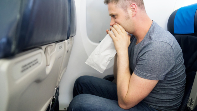 Не зря в начале полета бортпроводники раздают бумажные пакеты. Воспользуйтесь ими, когда ощутите недомогание: раскройте пакет, прижмите его ко рту и носу и дышите в него, пока не почувствуете себя лучше.