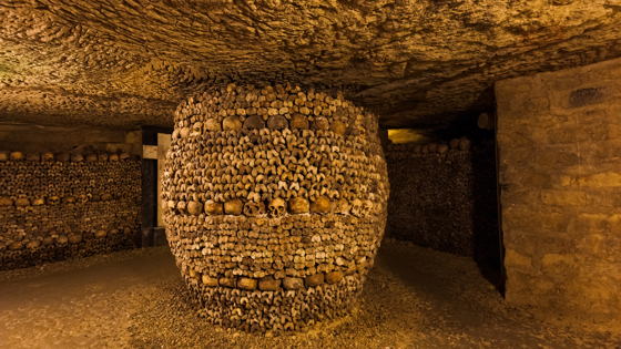Еще в 1200-х годах прошлого века в Париже создали каменоломни для добычи известняка. Местные жители испугались того, что дома провалятся и попросили оборудовать их в катакомбы. Позже в подземельях был оборудован оссуарий. Дело в том, что в Средневековье людей хоронили на территории церквей, но из-за эпидемии бубонной чумы люди просто не помещались. Спустя несколько нет захоронения перенесли в катакомбы. Сейчас там покоятся скелеты более семи миллионов человек.