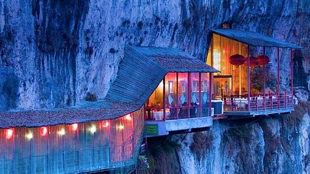 Китайский ресторан примостился на отвесной скале