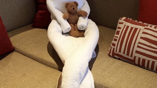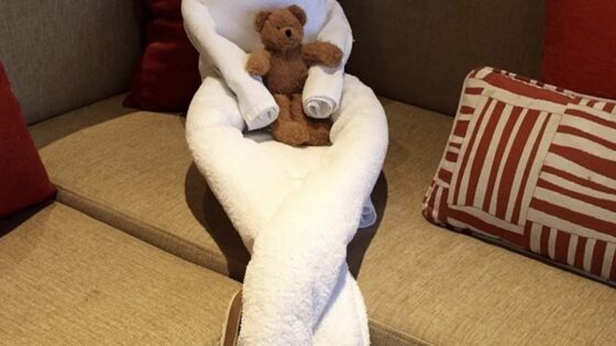 Из полотенца можно сделать массу животных и лучшие специалисты в этом деле- горничные в отелях. Давайте посмотрим на их работы. 🥰 Вернувшись в номер после прогулки, туристы обнаружили в своей комнате необычное животное из полотенца. Животные-полотенца — это причудливая гостиничная традиция. Обычно креативные сувениры от персонала постояльцы гостиниц и круизных лайнеров находят на кровати. Горничные сворачивают из полотенец фигурки животных — от обезьян и крокодилов до лебедей и слонов. Бывает, что подарка даже два! А иногда внутри животного из полотенца можно встретить сладкий гостинец. Некоторым постояльцам посчастливилось сделать фото животного из полотенца, сидящего на унитазе и читающего брошюру. Такие поделки очень умиляют, и люди оставляют щедрые чаевые!