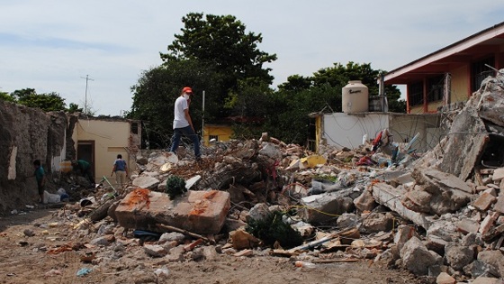 Затем на записи показана улица Измира с полностью разрушенными домами, автомобилями и людьми, которые пытаются разобрать завалы.