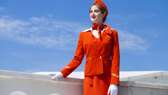 Стюардесса исполнила акробатический трюк на борту самолета.