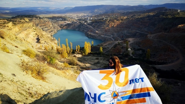 В этом году МЧС России исполняется 30 лет - именно столько сотрудники ведомства стоят на страже безопасности нашей страны, защищая, оберегая и помогая гражданам. Сотрудница Юго-Восточного округа Москвы Прошина Татьяна свой отпуск решила провести на Крымском полуострове, поставив себе задачу посетить 30 интересных мест, приурочив это к юбилею чрезвычайного ведомства. «Путешествия – это всегда увлекательно. В поездках получаешь массу впечатлений и приключений. Больше всего я люблю путешествовать по природным местам – именно на природе по-настоящему отдыхаешь от городской суеты, расслабляешься и набираешься новых сил,- рассказывает Татьяна. Путешествие прошло практически по всем городам Крыма. Татьяна посетила такие места, как Долина Сотера с ее каменными «грибами», мыс Фиолент в Севастополе, Храм Святого Иоанна Предтечи в Керчи, Мраморная пещера, урочище Таш-Джарган, Дырчатая пещера, Судакская (Генуэзская) крепость, Массандра, Инкерманские штольни и карьер, скала Дива в Симеизе, Форосская церковь, набережная Ялты, озеро Глубокое в Краснокаменке, Кадыковский карьер, пещерный Свято-Климентовский мужской монастырь и многое другое. Татьяна поделилась своими впечатлениями: «Особенно запомнилась поездка на главную достопримечательность Крыма – гору Ай-Петри. Этот день выдался пасмурным, а учитывая то, что мы путешествовали на своей машине, то дорога на вершину нам предстояла нелегкая: туманный серпантин с крутыми поворотами и сужениями. На самой вершине было тоже туманно с небольшими прояснениями. Видом с самой горы нам насладиться не удалось, но зато теперь есть повод вернуться! Мы погуляли по безлюдной вершине, а в кафе попробовали местную кухню – шурпу, лагман, манты и согрелись крымским травяным чаем. Еще запомнились обеды в необычных местах – на берегу озера с видом на известную гору Аю-Даг (Медведь-гора) и на побережье Симеиза у подножья скалы Дива Идея приурочить свой отпуск к юбилею МЧС пришла спонтанно – я люблю природу, люблю МЧС и свою работу. Вот и решила: а почему бы и не поздравить любимое Министерство с Днем рождения необычном образом - поднять флаг 30-летия на фоне красивых достопримечательностей Крыма».
