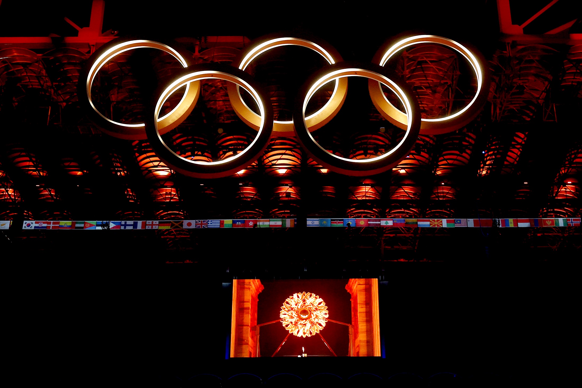 Очевидцы сняли на фото российский флаг на трибунах во время открытия Олимпиады