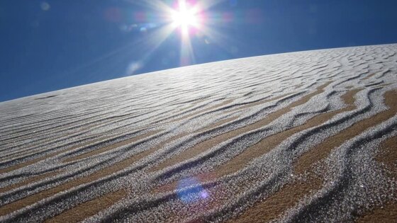 В Северной Африке началась настоящая зима: в Алжире и Марокко выпал снег. Причем осадки появились не только в горных районах (что вполне естественно), но и даже на отдельных участках пустыни Сахара. В итоге целые регионы этих двух арабских стран превратились в настоящие островки зимней сказки с белым снегом, пушистыми сугробами и замерзшими озерами. Необычное природное явление привлекло толпы туристов — из-за ограничений, связанных с пандемией коронавируса, это преимущественно местные путешественники. Все они делятся фото уникального природного феномена в социальных сетях. В Алжире снег выпал преимущественно в северных и северо-западных провинциях страны. В Марокко же основная доля осадков пришлась на горные районы Рифа на севере королевства, а также Среднего и Высокого Атласа. Благодаря неожиданному природному явлению заметно оживились горные курорты страны — там наконец начался полноценный туристический сезон, даже несмотря на пандемию. Frost paints beautiful paintings of the ain sefra dunes Algeria 17 01 2021 #الجزائر Опубликовано Karim Bouchetata Воскресенье, 17 января 2021 г.