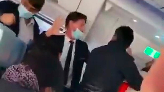 В частности, он непристойно высказался об Иисусе Христе, заявляя, что тот якобы «должен уйти», а также не реагировал на замечания окружающих, стучал в дверь кабины пилотов и угрожал физической расправой бортпроводнику. На размещенных в сети кадрах видно, как попутчики пытаются успокоить дебошира.