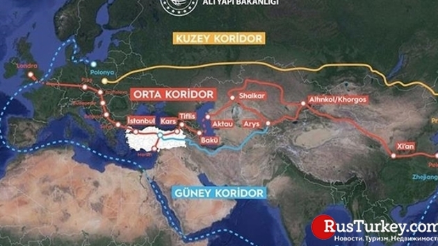 По его словам, значимость «Срединного коридора», нацеленного на оживление исторического Шелкового пути [Китай, Казахстан, Туркменистан, Азербайджан, Грузия, Турция и далее на Европу], актуализировалась на фоне инцидента с контейнеровозом The Ever Given, перекрывшим сообщение в Суэцком канале.