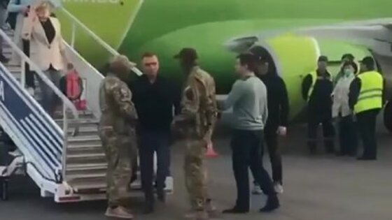 На кадрах запечатлено, как трое мужчин (двое в униформе и один в штатском) встречают пассажира самолета авиакомпании S7. Они берут его под руки и уводят в неизвестном направлении.