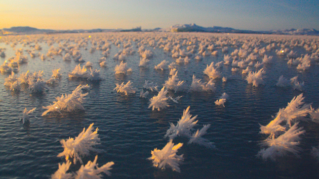 Смотрите видео и узнаете, как образуются морозные цветы в арктических водах.