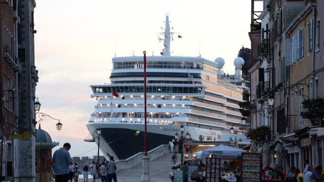Огромный пассажирский лайнер пришвартовался в центре Венеции
