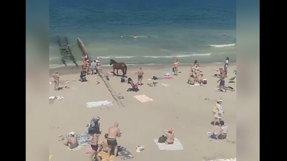 В Зеленоградске на морской пляж пришел конь