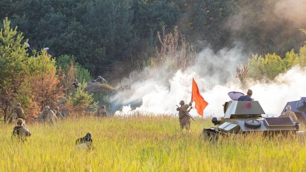 Первые взрывы, движение техники сразу же перенесли зрителей в далекий 1944 год