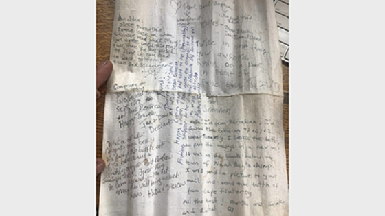 Канадец тоже оставил послание: «Нашел в песке на Уик-бич. Копии сделаны и направлены (по-видимому) счастливой паре. Я отдал оригинал шкиперу, чтобы он бросил его в море, и бутылка продолжила свой путь».