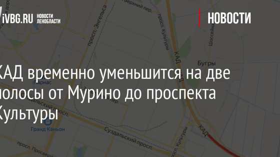 КАД временно уменьшится на две полосы от Мурино до проспекта Культуры
